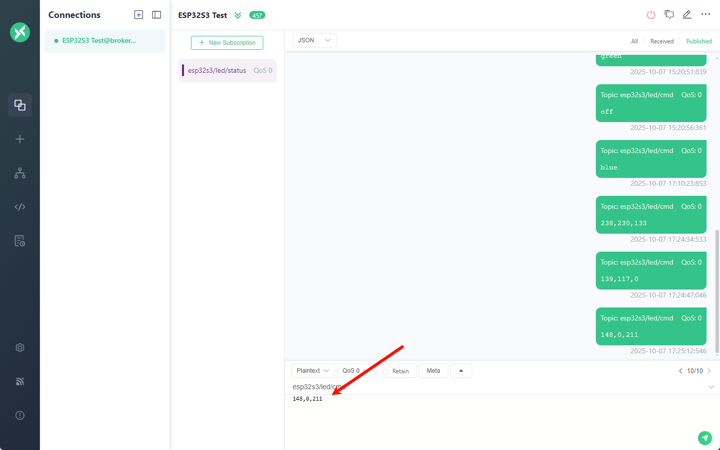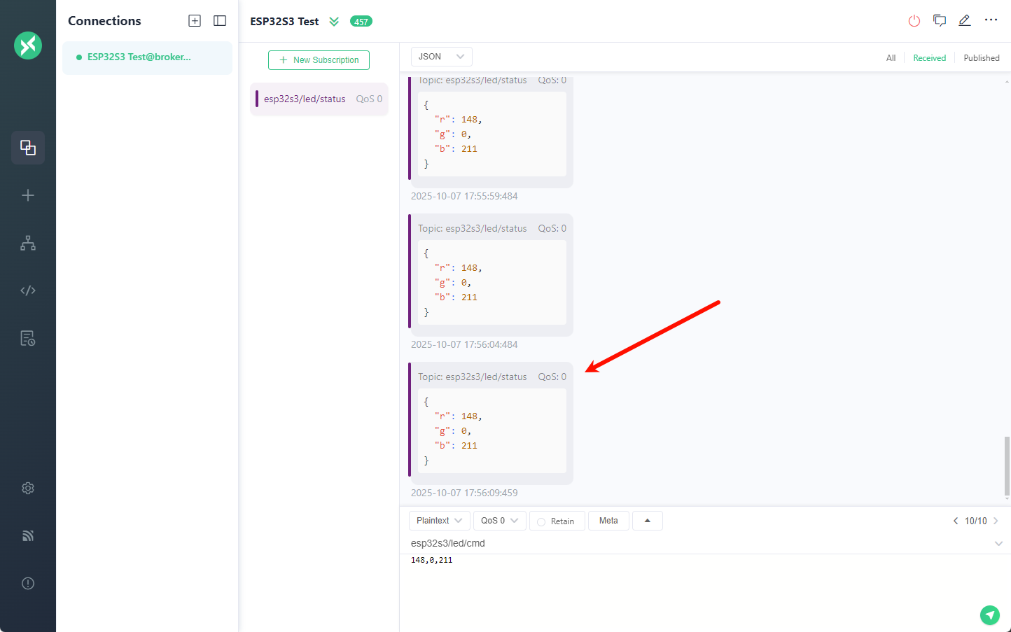 uart:~[00:00:05.441,000] <inf> main: Subscribe sent for topic: esp32s3/led/cmd